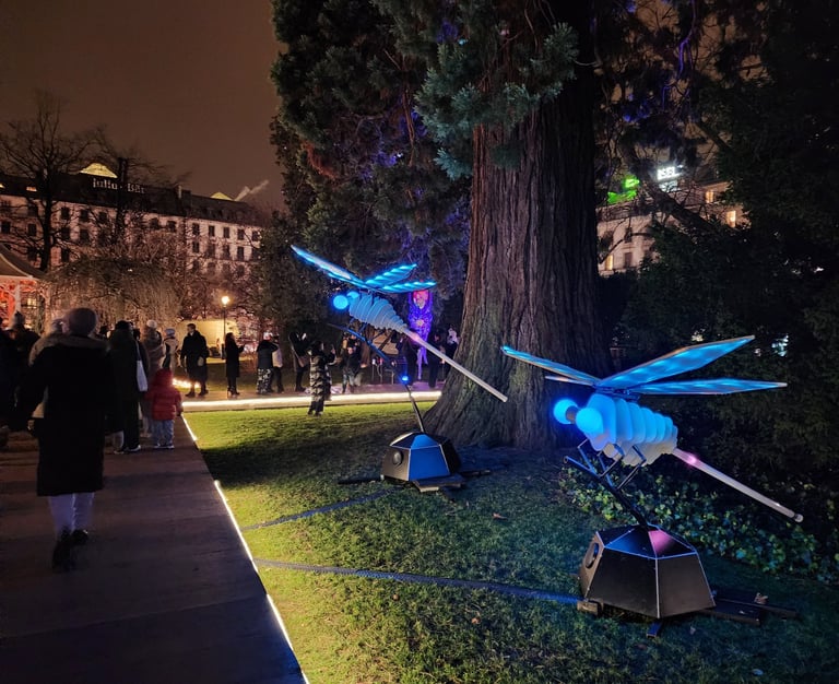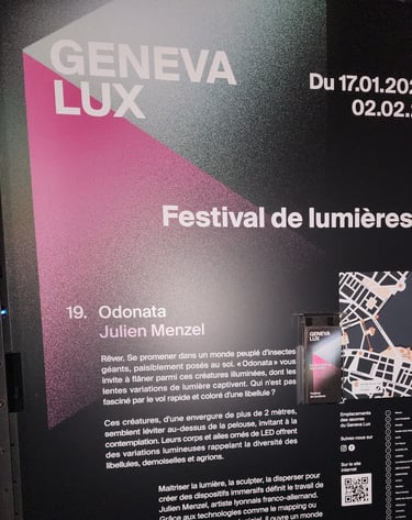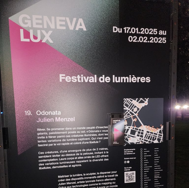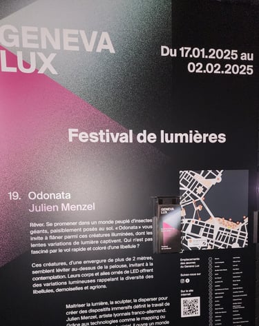 Présentation de l'œuvre Odonata créée par Julien Menzel à Geneva lux Festival lumières Genève janvier-Février 2025