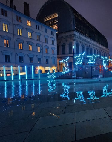 Accompagnement lors de la répétition générale et la première illumination de l'installation HDV : 40 ans de skate créée par Julien Menzel à la Fête des lumières de Lyon - Décembre 2025